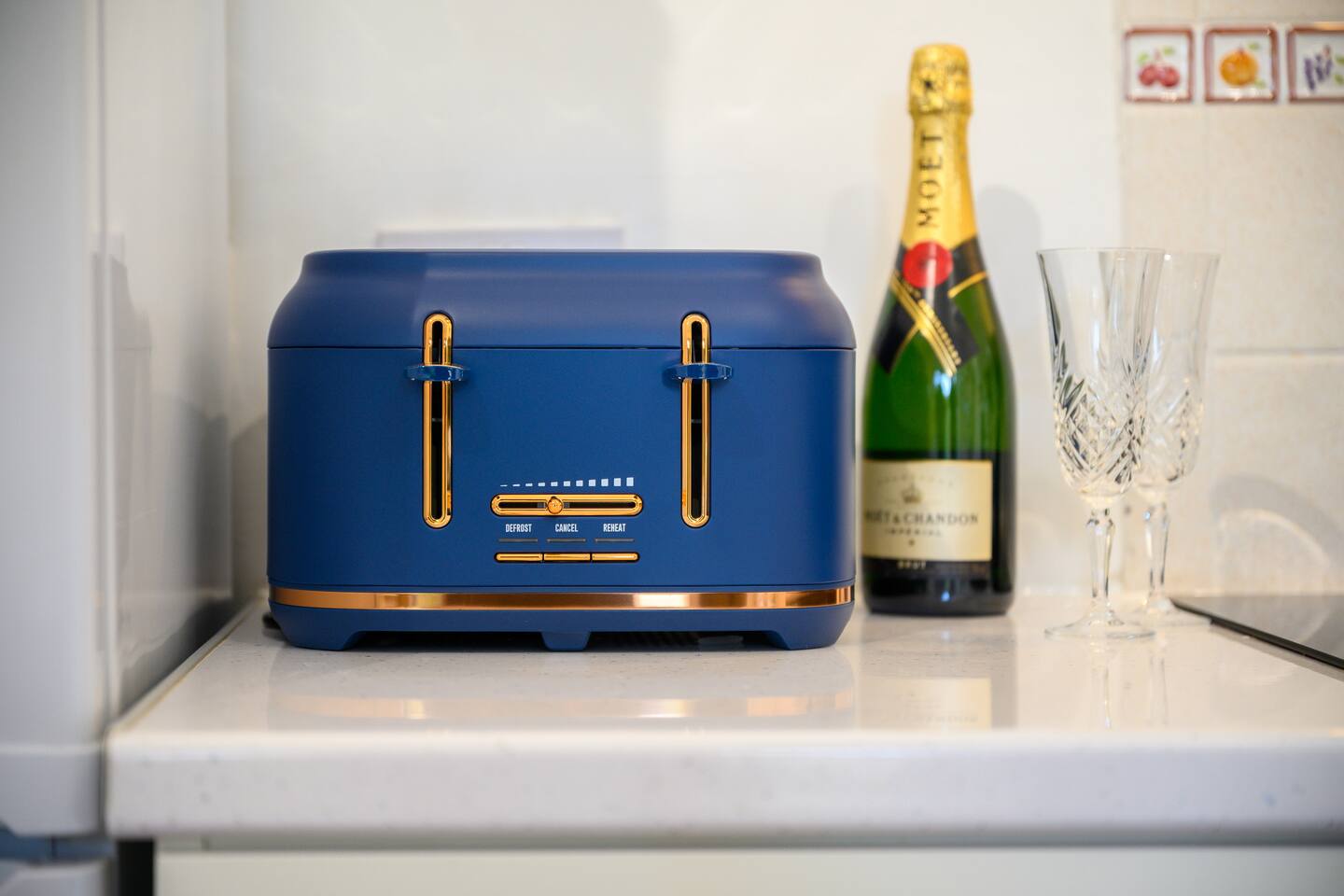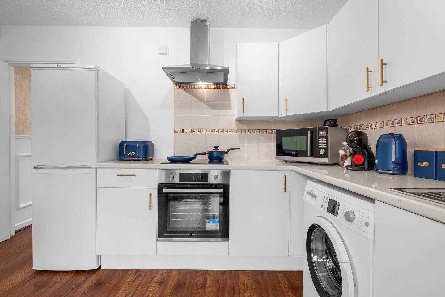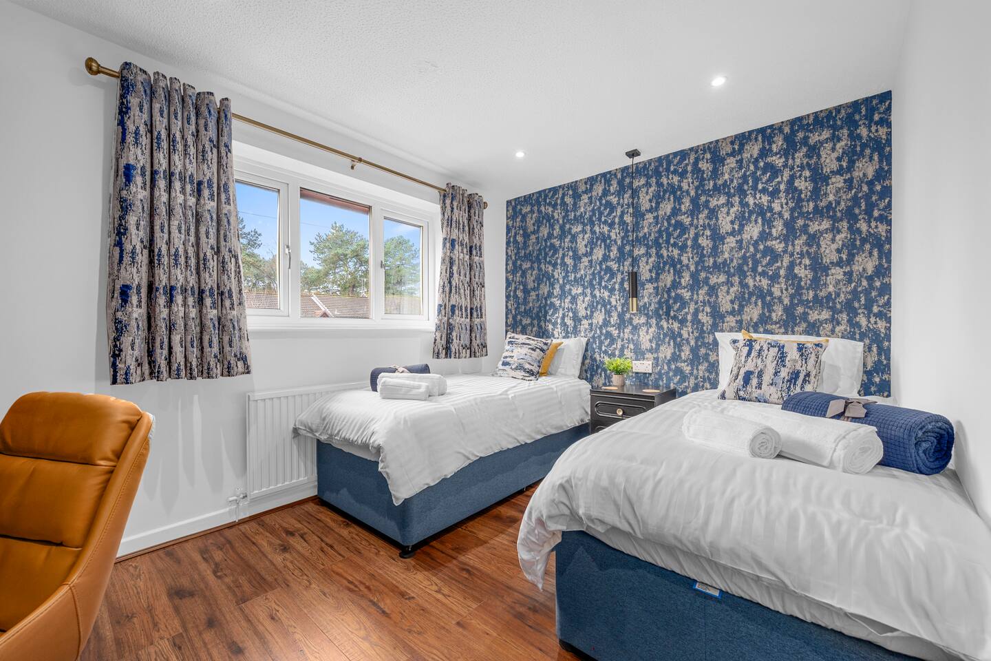 Bedrooms: Master bedroom with a plush double bed, high-end bedding, media wall with Smart TV, electronic safe, and a workspace with desk, chair, and USB charging points. Second bedroom featuring two cozy single beds, a media wall with Smart TV, electronic safe, and a dedicated workspace. Living Room: Spacious and elegantly designed with a feature wall-mounted Smart TV, loaded with all popular streaming apps, and a stylish electric fireplace. Comfortable seating, vibrant feature lighting, and tasteful decor create a welcoming ambiance. Kitchen & Dining: Fully equipped modern kitchen with a fridge, freezer, microwave, dishwasher, washing machine, and Dolce Gusto coffee maker. Complimentary tea bags, instant coffee, cappuccino pods, and sugar provided. Dining area with chic seating for four. Bathroom: Contemporary design with a standing shower and high-quality fittings. Complimentary towels, liquid hand wash, shampoo, conditioner, and body wash provided. Outdoor Space: Fenced back garden with a beautiful sitting area and seasonal flowers; perfect for your morning coffee or evening relaxation. Parking & Charging: Dedicated free bay parking for standard cars and SUVs, with free street parking for larger vehicles. Electric car charging available upon request (extra charge applies). Additional Features: High-speed WiFi, suitable for remote work. Dedicated work space in each bedroom with access to electric outlet and USB charging. Safety: Safety measures include interlinked smoke alarms, carbon monoxide detectors, exterior security cameras (front and rear), and a noise detection device to ensure safety and comfort. Digital safes in each bedroom. Check-in: Self-check-in for ultimate flexibility. Nearby Attractions: Sale Town Centre (5-minute drive): Restaurants, cafes, and bars. Altrincham Town Centre (10-minute drive): A vibrant hub of shops and eateries. Trafford Centre (15-minute drive): High-street and luxury shopping, family-friendly entertainment. Manchester City Centre (30-minute drive or 40-minute tram): Iconic attractions, shopping, and nightlife. Brooklands Tram Station (16-minute walk): Easy access to public transport. Guest Information: No smoking or pets allowed. Quiet hours from 11 PM to 7 AM. Check-in at 4 PM; check-out at 10 AM (early check-in and late check-out available for an extra fee, subject to availability). Whether you're visiting for business, a family getaway, or a long-term stay, this property offers everything you need for a memorable experience. Book now to enjoy luxury and convenience in the heart of South Manchester!
