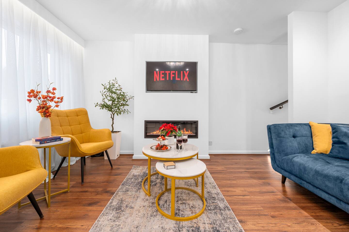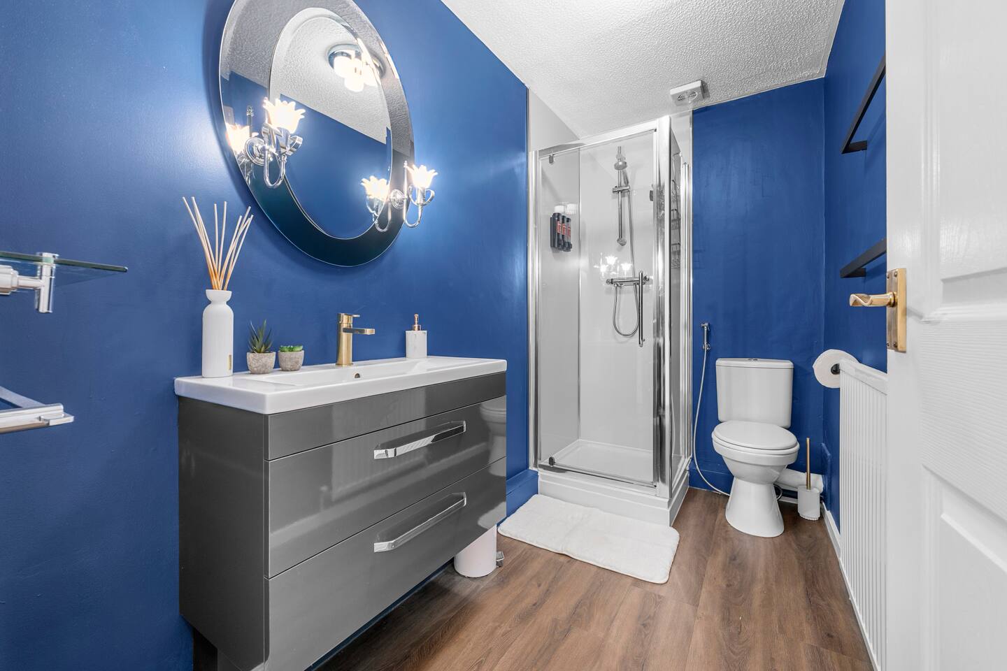 This luxurious two-bedroom home is a perfect retreat near Manchester Airport (12 mins by taxi). With elegant interiors, high-end furnishings, Smart TVs in every room, a fully equipped modern kitchen, and a private garden, it’s designed for comfort and convenience. High-speed WiFi and dedicated workspaces make it ideal for professionals, while its location offers easy access to Sale, Altrincham, Trafford Centre, and Manchester City Centre. Perfect for families, professionals, and travellers.