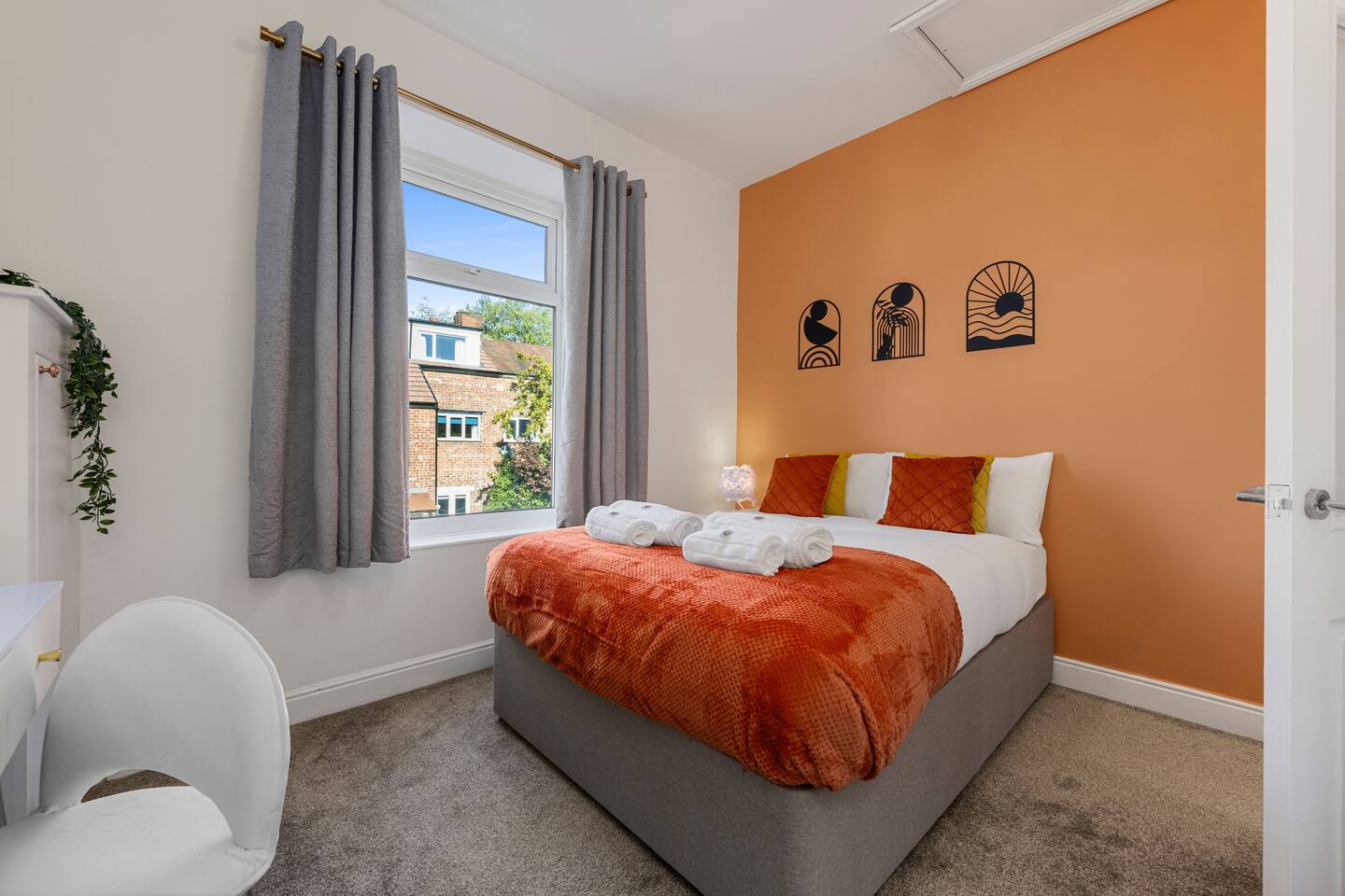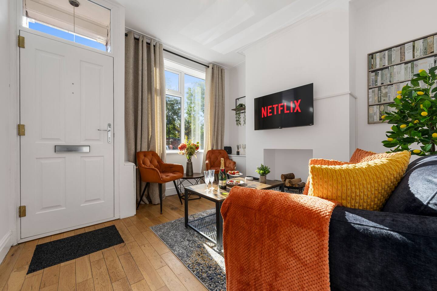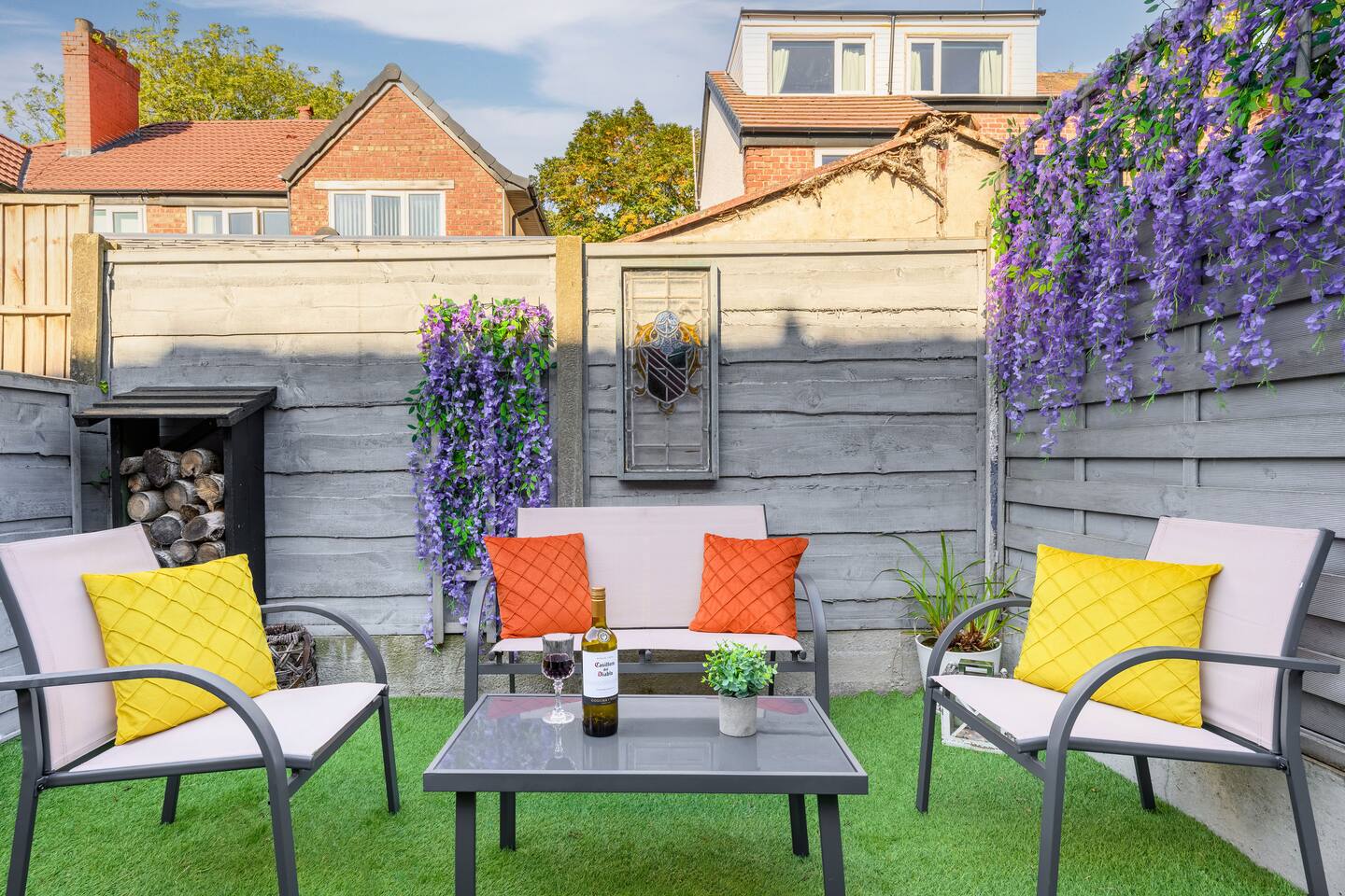 🏡 Stylish Red Sea–Inspired Retreat in Sale Welcome to your home away from home — a beautifully designed two-bedroom terrace just steps from Brooklands Metrolink. Perfect for professionals, couples, or small groups, this property blends modern living with elegant coral-inspired décor and thoughtful details throughout. ✨ The Space Living Area: A bright, stylish lounge designed for comfort with Smart TV and access to all popular streaming apps. Kitchen & Dining: A fully-fitted kitchen with oven, hob, fridge-freezer, microwave, Dolce Gusto coffee machine, kettle, toaster, and all essential utensils. Enjoy meals in the modern dining area with seating for four. Utility Room: Equipped with washing machine and dishwasher for convenience during longer stays. Bedrooms: Two elegant double bedrooms with high-quality mattresses, pillows, and duvets for a restful night’s sleep. Each bedroom features a dedicated workstation, Smart TV, and stylish décor inspired by coral and sea tones. Bathroom: Modern ground-floor bathroom with walk-in shower, fluffy towels, and complimentary toiletries. Outdoor Space: A private wisteria-lined garden with seating for four — perfect for a morning coffee or evening glass of wine. 🛠 Amenities Fast WiFi Smart TVs in all rooms Secure key safe entry Deposit safe for valuables Iron and ironing board Hairdryer Fresh linens and towels provided 🚊 Location & Transport The property is just a 2-minute walk to Brooklands Metrolink, offering direct connections into Manchester city centre, Salford Quays, MediaCity, and Manchester Airport. Altrincham is a 5-minute drive, and the Trafford Centre is 10 minutes away. 🚗 Parking Restricted street parking is available directly outside the property. Parking is free on weekends and from 6:00 PM to 9:00 AM on weekdays. For daytime parking, guests can use nearby Framingham Road or Whitehall Road (both just a few minutes’ walk). 👩💼 Perfect For Professionals working in Manchester or South Manchester, couples looking for a stylish retreat, or small groups wanting easy access to city life while enjoying a calm suburban base.