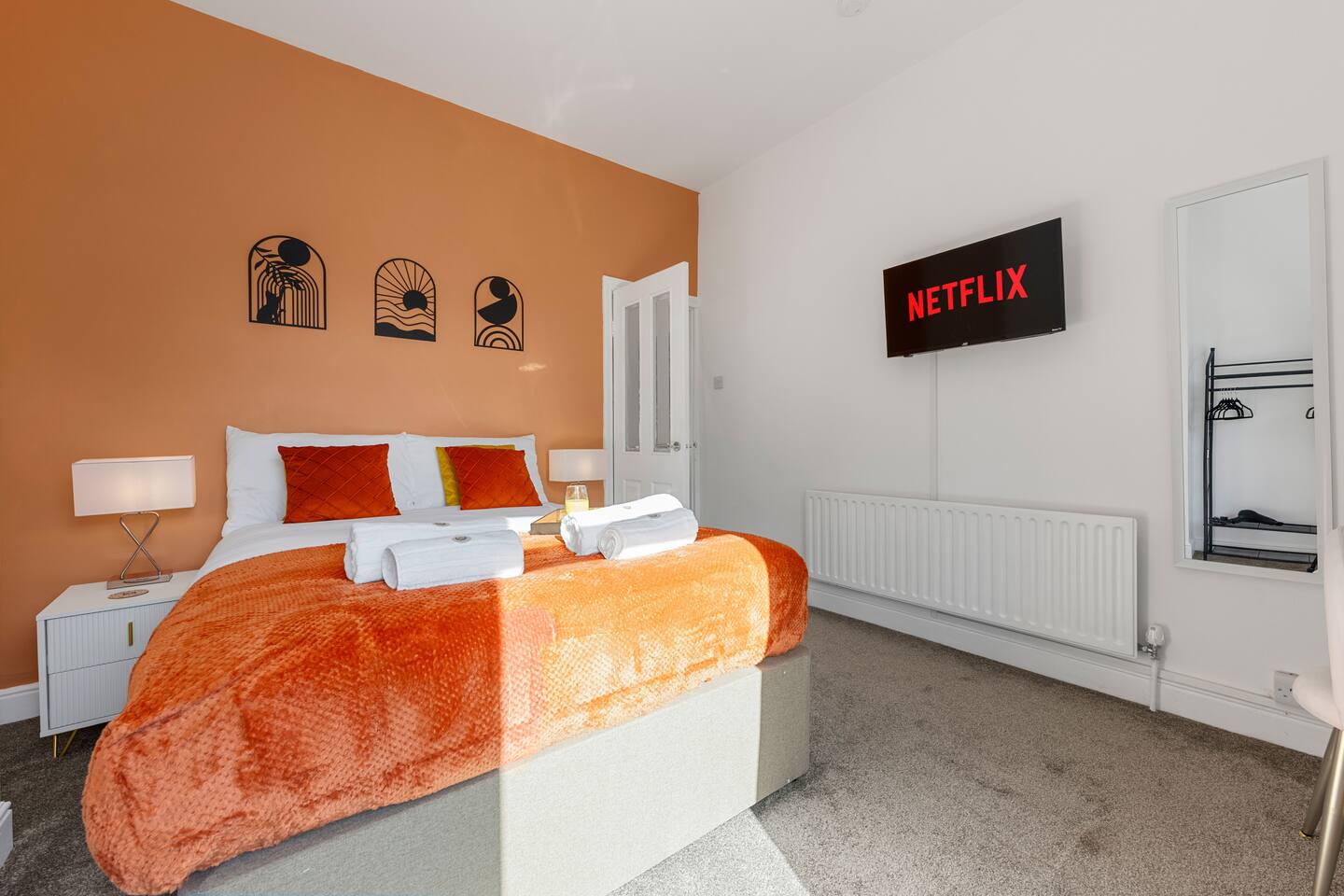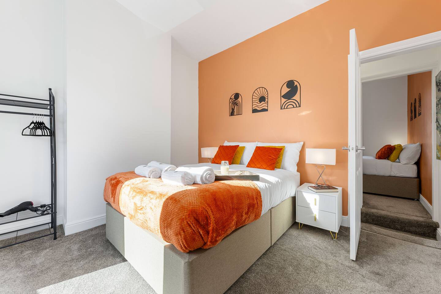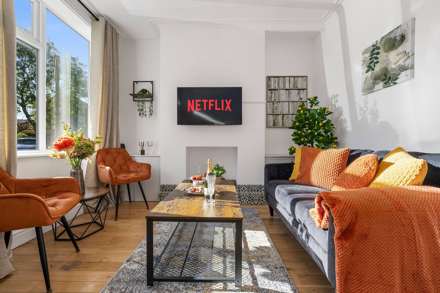 🏡 Stylish Red Sea–Inspired Retreat in Sale Welcome to your home away from home — a beautifully designed two-bedroom terrace just steps from Brooklands Metrolink. Perfect for professionals, couples, or small groups, this property blends modern living with elegant coral-inspired décor and thoughtful details throughout. ✨ The Space Living Area: A bright, stylish lounge designed for comfort with Smart TV and access to all popular streaming apps. Kitchen & Dining: A fully-fitted kitchen with oven, hob, fridge-freezer, microwave, Dolce Gusto coffee machine, kettle, toaster, and all essential utensils. Enjoy meals in the modern dining area with seating for four. Utility Room: Equipped with washing machine and dishwasher for convenience during longer stays. Bedrooms: Two elegant double bedrooms with high-quality mattresses, pillows, and duvets for a restful night’s sleep. Each bedroom features a dedicated workstation, Smart TV, and stylish décor inspired by coral and sea tones. Bathroom: Modern ground-floor bathroom with walk-in shower, fluffy towels, and complimentary toiletries. Outdoor Space: A private wisteria-lined garden with seating for four — perfect for a morning coffee or evening glass of wine. 🛠 Amenities Fast WiFi Smart TVs in all rooms Secure key safe entry Deposit safe for valuables Iron and ironing board Hairdryer Fresh linens and towels provided 🚊 Location & Transport The property is just a 2-minute walk to Brooklands Metrolink, offering direct connections into Manchester city centre, Salford Quays, MediaCity, and Manchester Airport. Altrincham is a 5-minute drive, and the Trafford Centre is 10 minutes away. 🚗 Parking Restricted street parking is available directly outside the property. Parking is free on weekends and from 6:00 PM to 9:00 AM on weekdays. For daytime parking, guests can use nearby Framingham Road or Whitehall Road (both just a few minutes’ walk). 👩💼 Perfect For Professionals working in Manchester or South Manchester, couples looking for a stylish retreat, or small groups wanting easy access to city life while enjoying a calm suburban base.