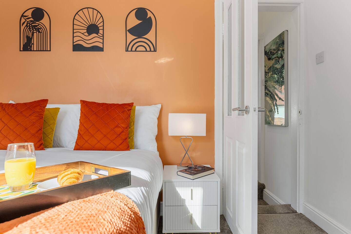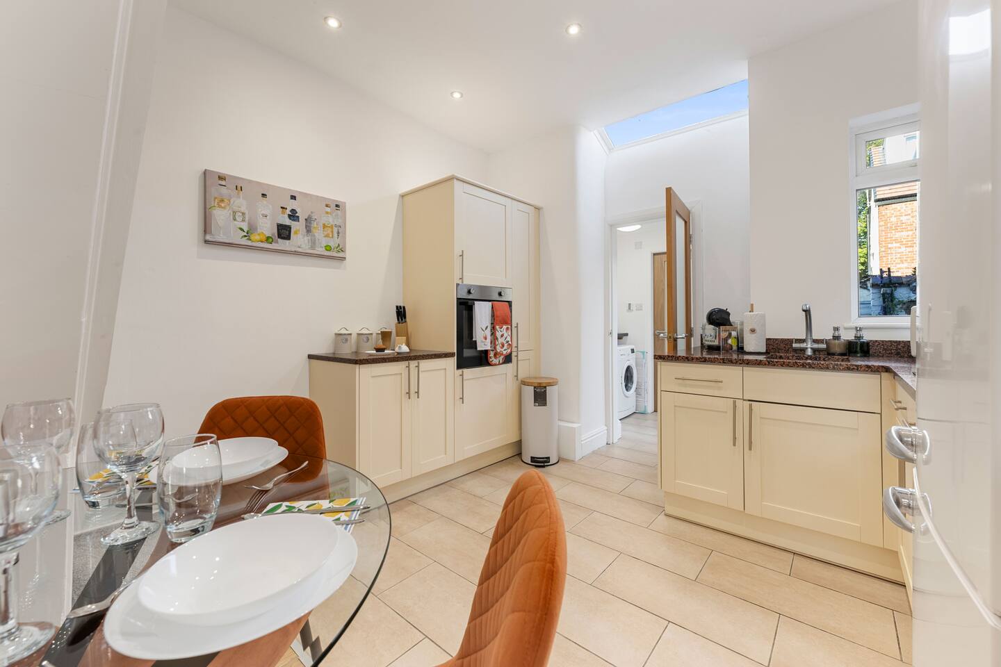 Steps from Brooklands Metrolink, this stylish Red Sea–inspired two-bed terrace house blends comfort with convenience. Featuring a coral-toned interior, modern fully-fitted kitchen, utility with washer, dishwasher, sleek bathroom, and two elegant double bedrooms with workstations and Smart TVs. Relax in the wisteria garden with seating for four. Perfectly connected to Manchester city centre, Altrincham, Trafford Centre and Airport. Restricted street parking available (free evenings & weekends).