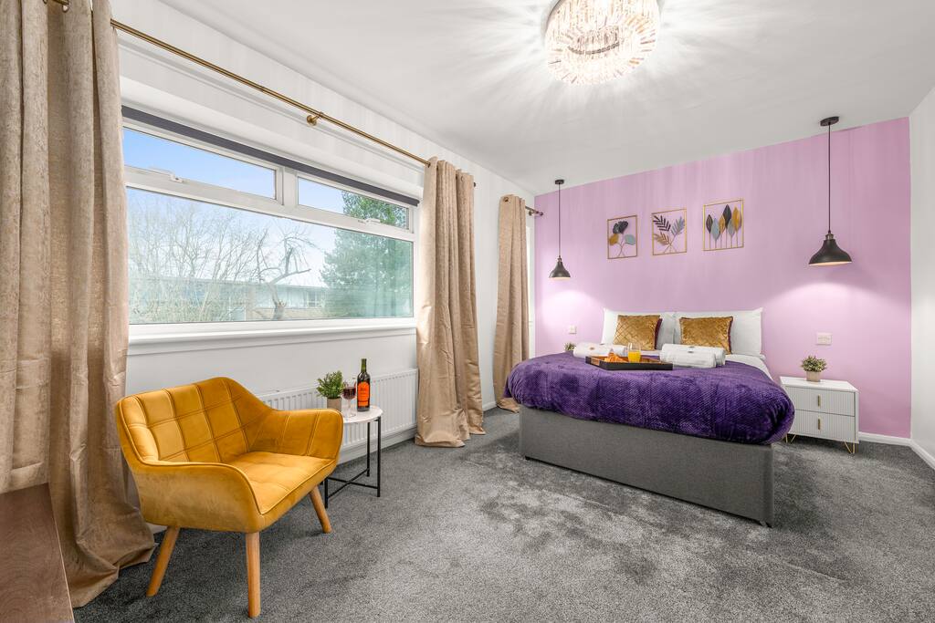 A beautifully presented two-storey home in a quiet South Manchester location with exceptional transport links to Manchester Airport, the city centre, MediaCity and the Trafford Centre. Thoughtfully designed to comfortably accommodate up to seven guests, the property offers a flexible layout ideal for families, professionals, contractors and airport travellers. A Home Within a Home – Perfect for Two The entire ground floor functions as a self-contained private suite, making it perfect for couples, guests who prefer to avoid stairs, or multi-generational stays. On the ground floor you will find: A comfortable double bedroom A full bathroom with walk-in shower Access to the living room, dining area and fully equipped kitchen Direct access to the private garden Two guests can live entirely on this level without needing to use the stairs. Spacious Upper Floor Sleeping for Five Upstairs you’ll find two further bedrooms and a second full bathroom with walk-in shower: Master bedroom: Double bed with beautiful garden views Front bedroom: Sleeps three with one double bed and one single bed Family bathroom: Modern walk-in shower Magical Garden Space Step into a charming enclosed garden featuring soft faux grass, a private patio area and decorative faux wisteria flowers, creating a peaceful and atmospheric space for evening relaxation, outdoor dining or enjoying your morning coffee. Comfort, Entertainment & Everyday Convenience You’ll enjoy a full range of home comforts, including: Fast, free Wi-Fi Smart TVs in every bedroom and the living room DVD player with a large DVD collection Dulce Gusto coffee machine, plus tea, coffee and sugar Fully equipped kitchen with dishwasher Washer-dryer Workspace with USB charging Iron and ironing board Hair dryer in every bedroom Fresh linens, towels and hotel-quality bedding Digital safe Private driveway parking for two cars or one van Ample additional free street parking Easy walk to Metrolink tram stops with direct links to the airport and city centre Just minutes by taxi to Manchester Airport Moorcroft Mews combines flexibility, comfort and outstanding transport links — making it a perfect base whether you’re travelling for work, family visits, holidays or early flights.